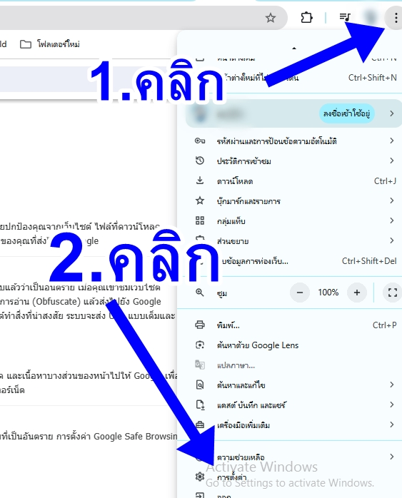 1.คลิกเมนู จุด 3 จุด (เมนู) มุมขวาบน จากนั้นคลิกเมนู ตั้งค่า ดังรูป