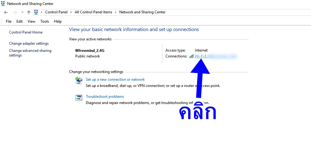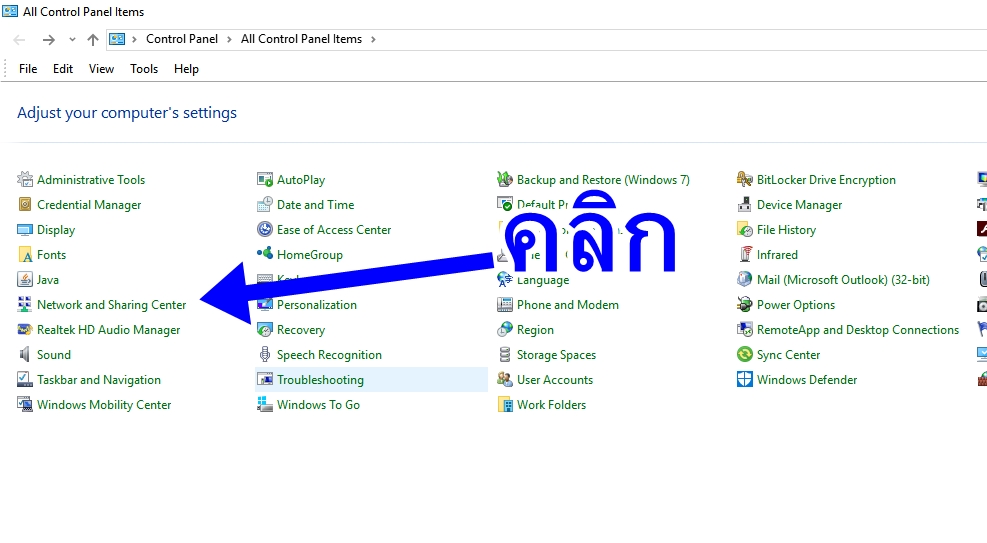 3.คลิกเมนู Network and Sharing Center