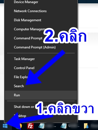 1. คลิกขวา windows icon แล้วเลือกเมนู Search ตามตัวอย่าง