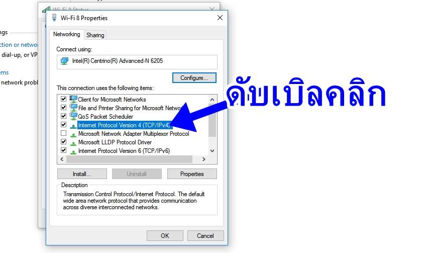 6. ดับเบิลคลิก Internet Protocol Version 4 (TCP/IPv4) ดังรูป