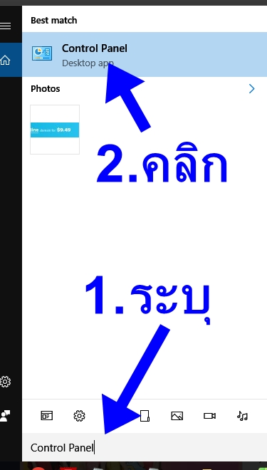 2.ค้นหาคำว่า Control Panel แล้วคลิกดังรูป